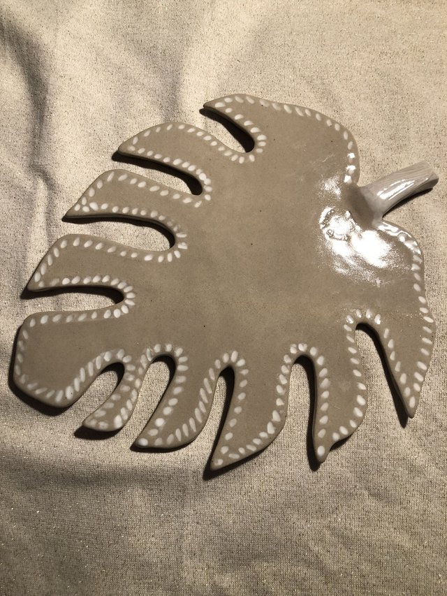 sous plat en grès toffee, structuré sur les bord, engobe blanc et émaillé avec une couvert transparente. Dimension: 28x21 cm